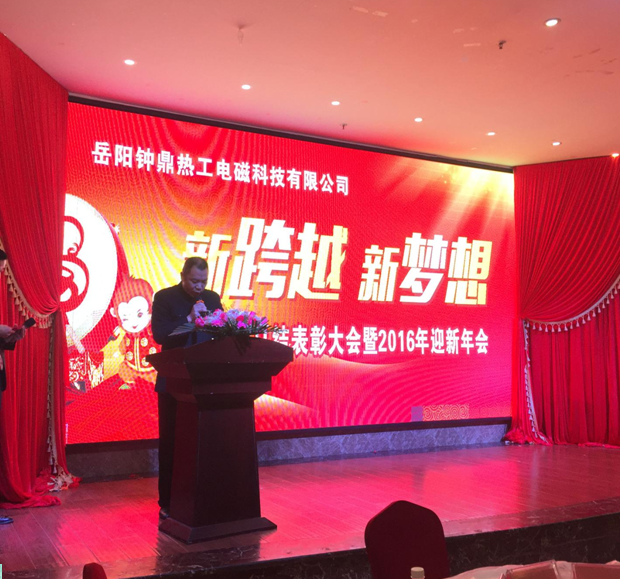 2016年2月3日岳陽(yáng)鐘鼎熱工電磁科技有限公司2015年總結(jié)表彰大會(huì)暨2016年迎新年會(huì)在花板橋新大新酒店隆重舉行。鐘鼎熱工青年才俊們的開(kāi)場(chǎng)詩(shī)朗誦《鐘靈毓秀、鼎盛未來(lái)》拉開(kāi)年會(huì)的序幕,該詩(shī)篇講述了鐘鼎熱工創(chuàng)始人從創(chuàng)業(yè)到發(fā)展、到跨越升級(jí)的全過(guò)程,是一部非常勵(lì)志的史詩(shī)。
