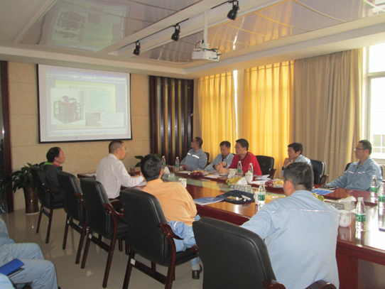 參觀結(jié)束后,許總一行在三樓會議室與我公司領(lǐng)導(dǎo)進行了座談,座談會上技術(shù)開發(fā)中心羅主任為許總一行詳細介紹了我公司發(fā)明專利產(chǎn)品——回轉(zhuǎn)蓄熱式空氣預(yù)熱器的結(jié)構(gòu)特點和運作模式,許總一行在聆聽完羅主任的介紹后,就該產(chǎn)品的使用環(huán)境和所帶來的社會、經(jīng)濟效益與游總進行了深入的交流和探討,他希望我公司能在未來的發(fā)展中,為石油化工領(lǐng)域研發(fā)出更多節(jié)能環(huán)保的好產(chǎn)品。